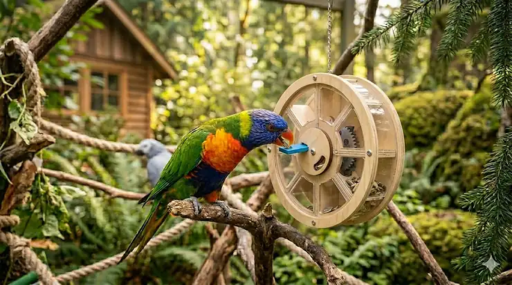 Wild parrots don’t encounter acrylic puzzle boxes—they manipulate pine cones, excavate seed pods, and strip bark searching for insects. Replicating these natural behaviours requires thinking beyond commercial products to environmental foraging opportunities Canadian backyards can provide.